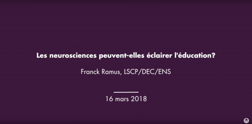 Conférence de Franck Ramus dans le cadre de la Semaine du Cerveau 2018 organisée par le Département d’études cognitives de l’ENS.