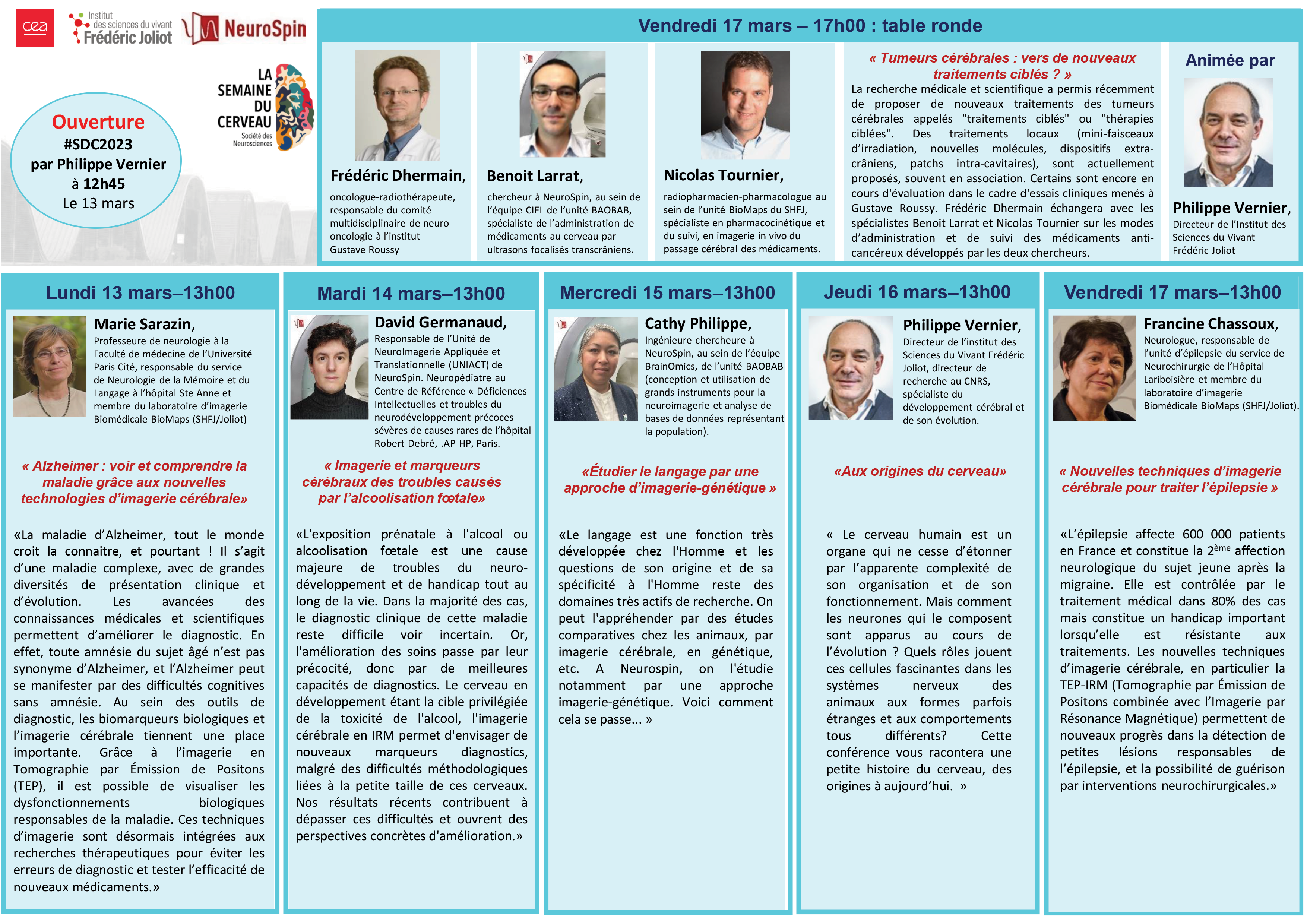 (12h45 le lundi pour l’ouverture de la semaine du cerveau).