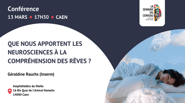 Dans cette conférence, Géraldine Rauchs, directrice de recherche à l’Inserm, présentera des travaux récents de neurosciences permettant d’expliquer quand les rêves sont produits, quelles sont leurs caractéristiques et leurs bases cérébrales. Elle abordera également les différentes fonctions du rêve, notamment dans les processus de mémorisation et de régulation émotionnelle.