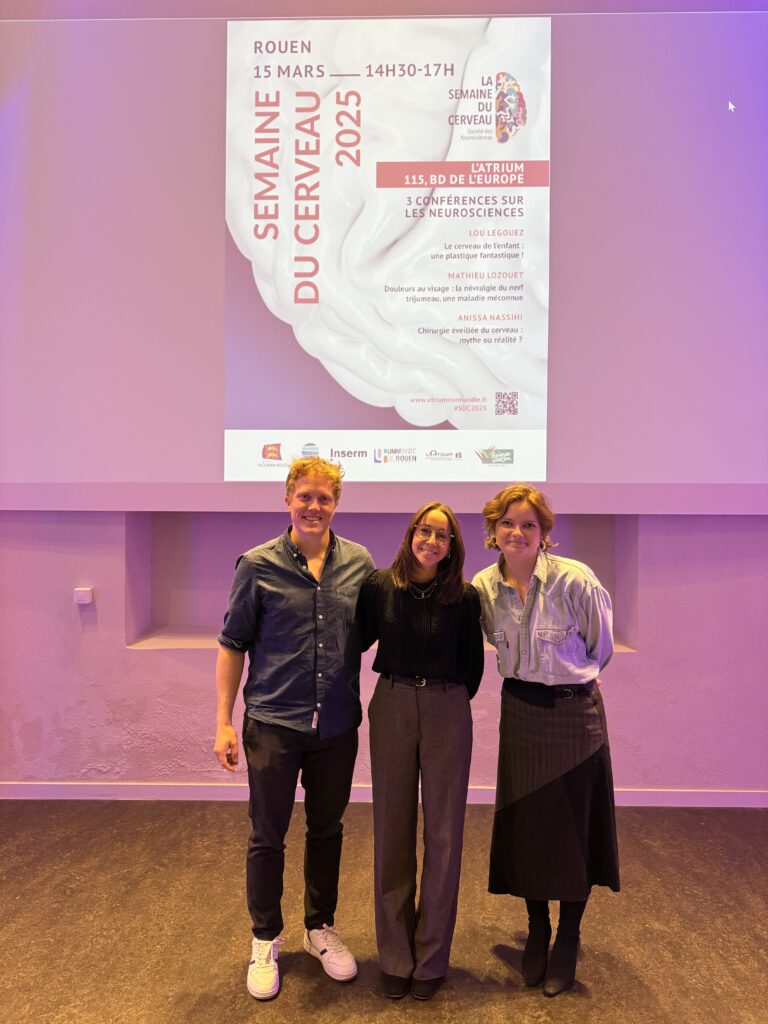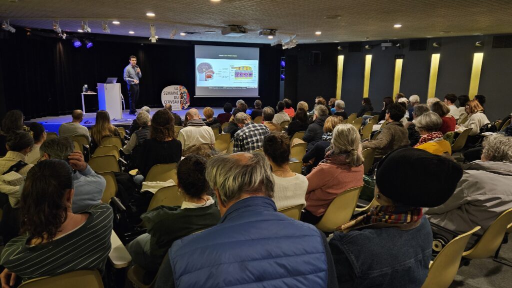 Poitiers 2025 – Pièce de théâtre « Qu’est-ce que tu as dans la tête ? »Tours 2025 – Rencontre littéraire « Le cerveau reptilien, l’histoire d’un neuromythe »Lorraine 2025 – Conférence « Perturbations cognitives, comportementales et psycho-affectives après un traumatisme crânien chez l’adulte »Nantes 2025 – Rendez-vous lycéens-jeunes chercheur·e·s du jeudiPoitiers 2025 – Pièce de théâtre « Échec et match : émotions et performance sportive »Rouen 2025 – Trio de conférencesLille 2025 – Portes ouvertes du laboratoire Lille Neuroscience et CognitionLille 2025 – Conférence « Comprendre les croyances complotistes grâce aux neurosciences »Lorraine 2025 – Conférence « A table ! Comment le cerveau gère notre appétit ? »Nantes 2025 – Atelier scolaireLorraine 2025 – Conférence « De la neurooncologie à la créativité: l’apport de la chirurgie éveillée des tumeurs cérébrales »Lyon 2024 – Conférence « Quand le cerveau tombe amoureux »Lorraine 2024 – Concert-débat « L’odyssée musicale du cerveau »Lille 2024 – Portes ouvertes du laboratoire Lille Neuroscience et CognitionMarseille 2024 – Pièce de théâtre « Qu’est-ce que tu as dans la tête ? »Lyon 2024 – Ciné-débat « Wrong »Auvergne 2024 – Exposition « Mais qu’est-ce qu’on a dans la tête ? »Toulouse 2024 – Conférence « Une mémoire de poisson rouge… les souris et les mouches aussi ? »Chambéry 2024 – Café des sciences « Cerveau : pourquoi est-il si difficile de s’engager ? »Lille 2024 – Portes ouvertes du laboratoire Lille Neuroscience et CognitionLimousin 2024 – Concert-débat « Dialogue musique et sciences : enrichissement réciproque ! »Tours 2024 – Rencontre littéraire avec Alexia BellevilleLyon 2024 – Atelier de sensibilisation aux maladies rares du neurodéveloppementAuvergne 2024 – Concours « CervOlympique » pour les écoles primairesLorraine 2024 – Conférence sur la dyslexie développementaleLimousin 2024 – Pièce de théâtre « Cerebrum »Lille 2024 – Portes ouvertes du laboratoire Lille Neuroscience et CognitionLimousin 2024 – Conférence « La performance sportive et le cerveau »Lyon 2024 – Atelier « Sea Hero Quest : quand le jeu vidéo devient un outil pour les neurosciences »Tours 2024 – Pièce de théâtre « Dys sur dix »Auvergne 2024 – Concours « CervOlympique » pour les écoles primairesMarseille 2024 – Conférence « Membre fantôme, mais si réel ! »Lyon 2024 – Conférence « L’odorat, un sens émotionnel caché et omniprésent »Marseille 2024 – Conférence « Influence des stéréotypes de genre sur les performances cognitives et les décisions de recrutement »Limousin 2024 – Concert-débat « Dialogue musique et sciences : enrichissement réciproque ! »Toulouse 2024 – Conférence « Une mémoire de poisson rouge… les souris et les mouches aussi ? »Auvergne 2024 – Concours « CervOlympique » pour les écoles primaires